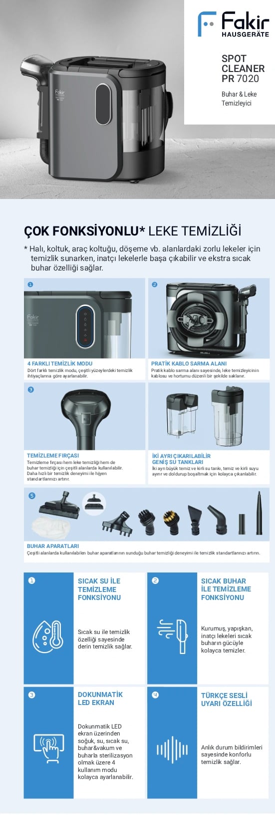 Fakir Spot Cleaner PR7020 Buharlı&Vakumlu Temizleyici